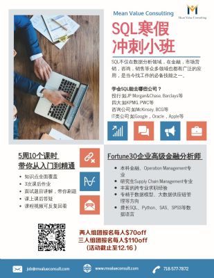 MeanValue寒假SQL冲刺小班,5次精编Data Science实战网络直播课程为大家在学习数据语言的路上铺平道