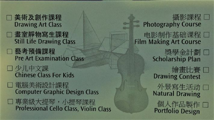 課程美術及創作專業課:素描/線描/水彩/油畫/蠟筆/鉛筆/噴繪/版畫拓印/立